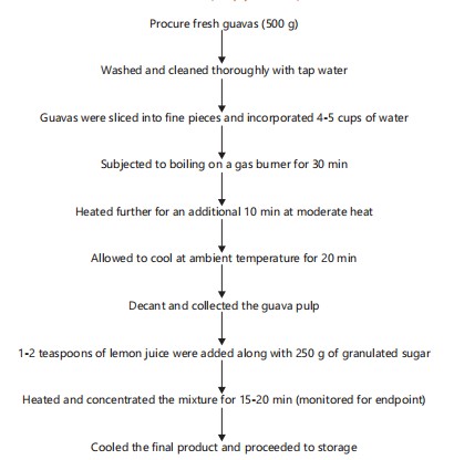 Guava jelly preparation and sensory evolution: Two guava types, PG1 and PG3, were utilized to make the jelly. The steps used to prepare the jelly are depicted in the flow chart.