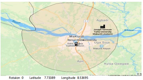 Study area: The study was carried out in Joseph Sarwuan Tarka University, Makurdi, Benue State, Nigeria. The study location is situated in North Central Guinea Savannah Region of Nigeria, On Latitude: 7°44'15"N and Longitude: 8°31'17"E. Benue State is bounded on the East by Enugu State, on the South by Ebonyi, Cross River States and Cameron Republic; on the West by Kogi State and on the North by Nasarawa and Taraba States. The state has a total land area of 3,993.3 km2 with an estimated population of 4,253,641 million people8. The soil composition on the area varies from sandy to loamy and is surrounded by vegetations, building and lakes. The occupations of majority of inhabitants are farming. The climatic condition of the state is characterised by an oppressive precipitation season which begins from April to October, with the most wet days in September. The hottest seasons last from April with average temperature above 92 and 76 F. The cool seasons lasts from June to December, ranging from 86 to 64 F. The length of day does not vary significantly, in 2024 the shortest day was recorded in December 21, with 11 hrs, 41 min, the longest day in June with 12 hrs 34 min of daylight.