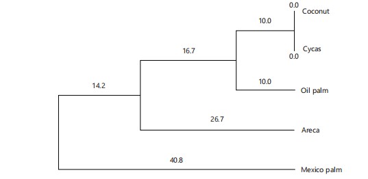 | Cocos nucifera L. | Coconut | Arecoideae | Cocoseae | Attaleinae | South-Core/ North-Core |