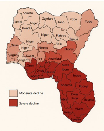 Protecting natural habitats and floral resources: Protecting natural habitats and maintaining diverse floral resources are crucial for sustaining healthy pollinator populations, particularly in agricultural landscapes where crops like cocoa, cashew, and oil palm depend on insect pollination32. Natural habitats such as forests, wildflower meadows, and riparian zones serve as nesting sites and foraging grounds for bees, midges, and weevils that pollinate these crops33. Conservation efforts that preserve or restore these habitats can significantly improve pollination services and contribute to sustainable agricultural production. The map in Fig. 4, illustrates farming areas in Nigeria where the populations of pollinators are decreasing.