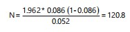 | d | = | Margin of error at 5% (standard value of 0.05) |