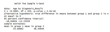 Figure 11 above is the test used to determine whether the average tumor size differs significantly between benign and malignant diagnoses. This analysis was conducted using stats package in R software version 4.4.2.
