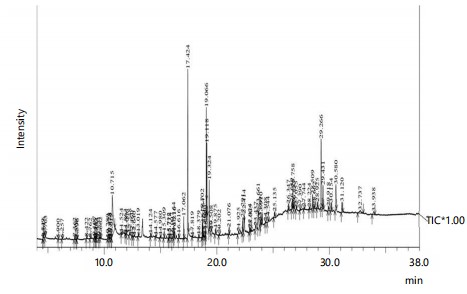 A qualitative and quantitative analysis of the phyto-constituents offers valuable insights for the discovery of new drugs. Gas Chromatography-Mass Spectrometry (GC-MS) is a reliable analytical method that has been widely used for the structural elucidation of a broad range of phyto-constituents, such as glycosides, flavonoids, phenolics, essential oils, alkaloids, saponins, steroids, and their derivatives, in addition to the analysis of volatile compounds3. Thus, the GC-MS profiling of a plant extract helps in the identification of pharmacologically valuable compounds.
