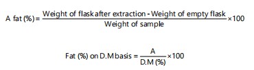 Determination of crude fat in poultry waste: The 2 g samples were weighed on a filter paper. Then the filter paper was placed along with the sample in the extraction thimble. The thimble was placed in a Soxhlet extractor fitted with a condenser. Poured 150-200 mL of ether is in the pre-weighted empty flask. The flask was attached to the extraction apparatus over a hot plate. On heating the flask ether was evaporated, condensed, and fell in the form of drops on the sample. The condenser was filled with ether, and the fat from the sample will automatically back into the flask. The process was repeated for 5 hrs. At the end of the extraction, remove the thimble from the apparatus. Distil the ether and then pour it into a bottle. The ether evaporated was left in the flask by drying in an oven at 70-80°C for 2 hrs. Cooled the flask in desiccators and weighed.